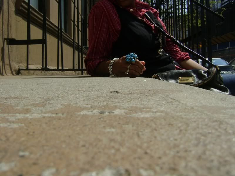 On Sunday I went to my first ever car show! And I loved every minute of it. The weather cooperated again with temperatures in the mid-70's, but I wasn't quite sure of what to wear; do you go rugged? Sporty? I settled on my ass-kicking Doc Martens (thanks, Mom) and a plaid shirt. I also busted out my brand-spanking- new Marc by Marc Jacobs bag, bought on sale from Piperlime.com and charged on my Gap card. Which I will not using again for a long time. Possibly ever. And the entire time that I was getting dressed, that line from Clueless kept playing in my head... 'She could be a FARMER in those clothes!'